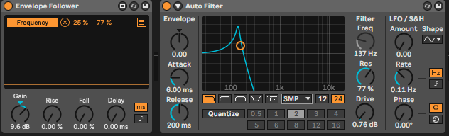 実際ギタリストやベーシストの人はAuto FilterのEnvlopeをフルに設定したらよくわかると思います。