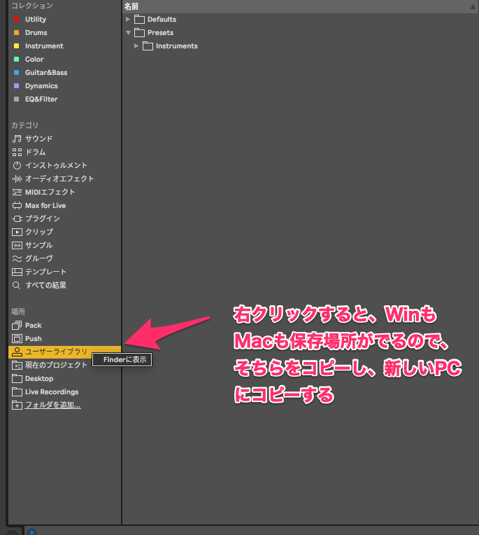 ちなみに、MacからWindowsでもユーザーライブラリは移行できるので環境が変わったときも安心です。ユーザーライブラリ、便利ですね!