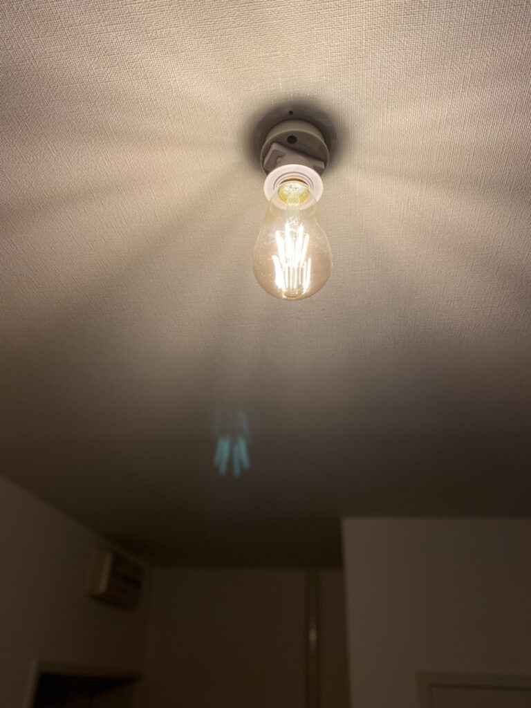 コンセントの工事をしたときに外してもらいました。蛍光灯の灯りは頭痛がするので部屋にいる時間を快適にできたのはとても嬉しいです。快適な時間を長くして、不快な時間を短くする。住環境の改善は即効性もあるし、いいですねえ…