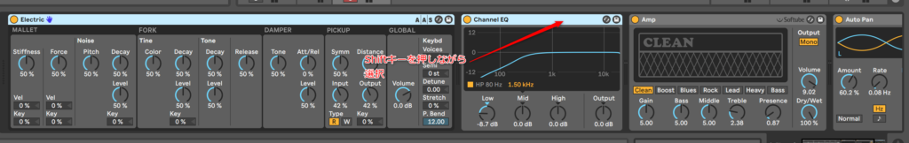 これ、Ableton Liveの信号の流れを理解する必要があるんだけど、これはElectricだけにAmpがかかるようにしたいからなんだよね。