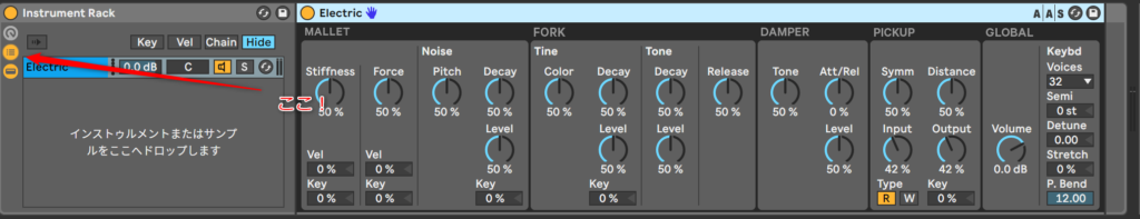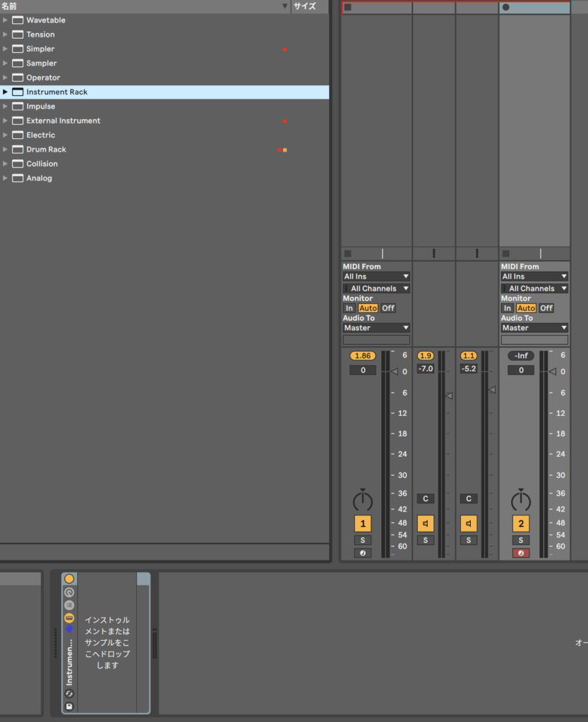はい、こうするとInstrument Rackが出来るね。