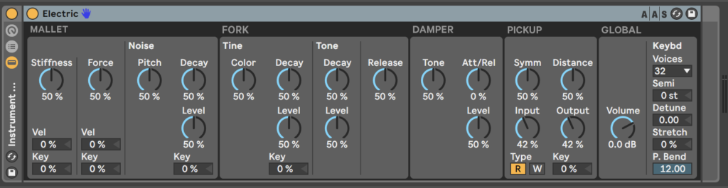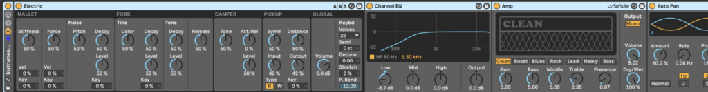 今回は、Ableton LiveのSuiteに付属しているElectricを読み込んだよ。この子もなかなかできる子なんだけど、このままじゃちょっと寂しい。エフェクト色々掛けて本領発揮や。