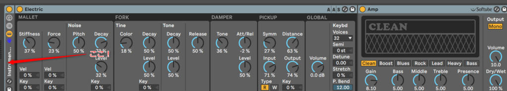 じゃあ、ちょっと昔のRhodesみたいな感じにしてみようか。なので、アンプを加えます。