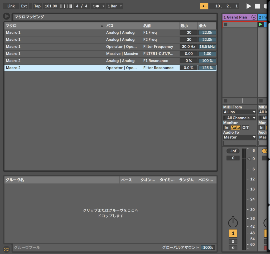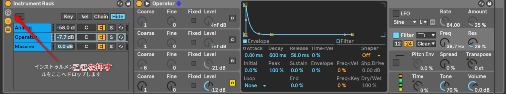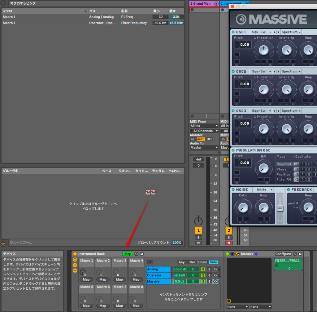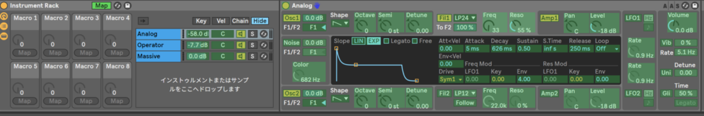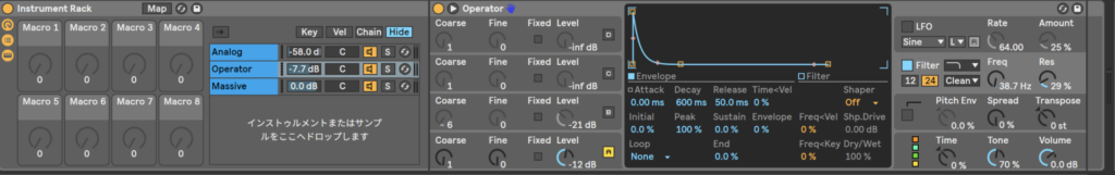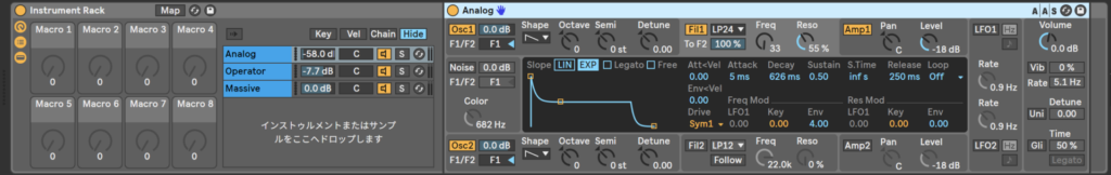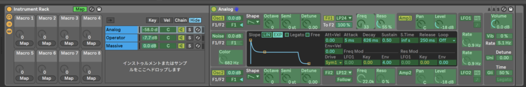 AnalogとoperatorとMassiveのフィルターとカットオフをマクロでコントロールしてみようか。