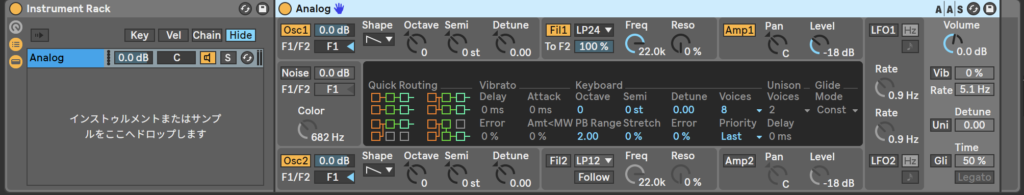 じゃあ、Analogのフィルターからつまみに割り当てていこう。どうすればええんやろうか。