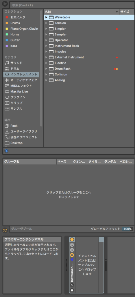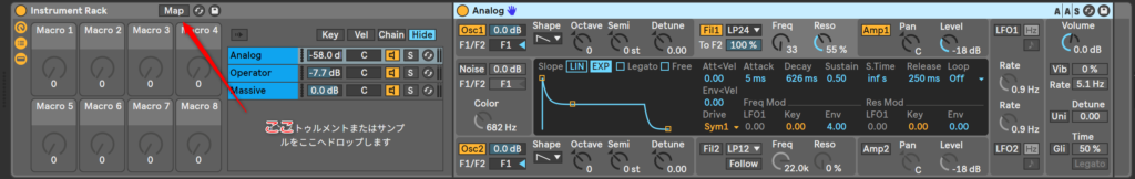 で、勉強会で、Instrument Rackにしようとすると、他の音源に変わってしまって絶望や!という質問をもらったので書いておくね。Ableton Liveはたいてい、ドラッグ・アンド・ドロップでいけるけどこれはちょっと違う。