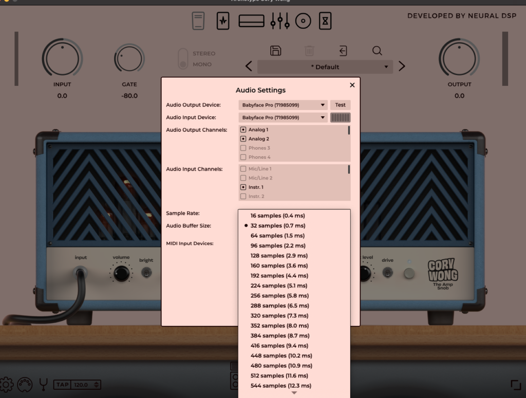 最も詰めると0.4msなのでハードのアンプシミュレータと同じか場合によっては早いかもしれないですね。ハードでも遅延はあるので…