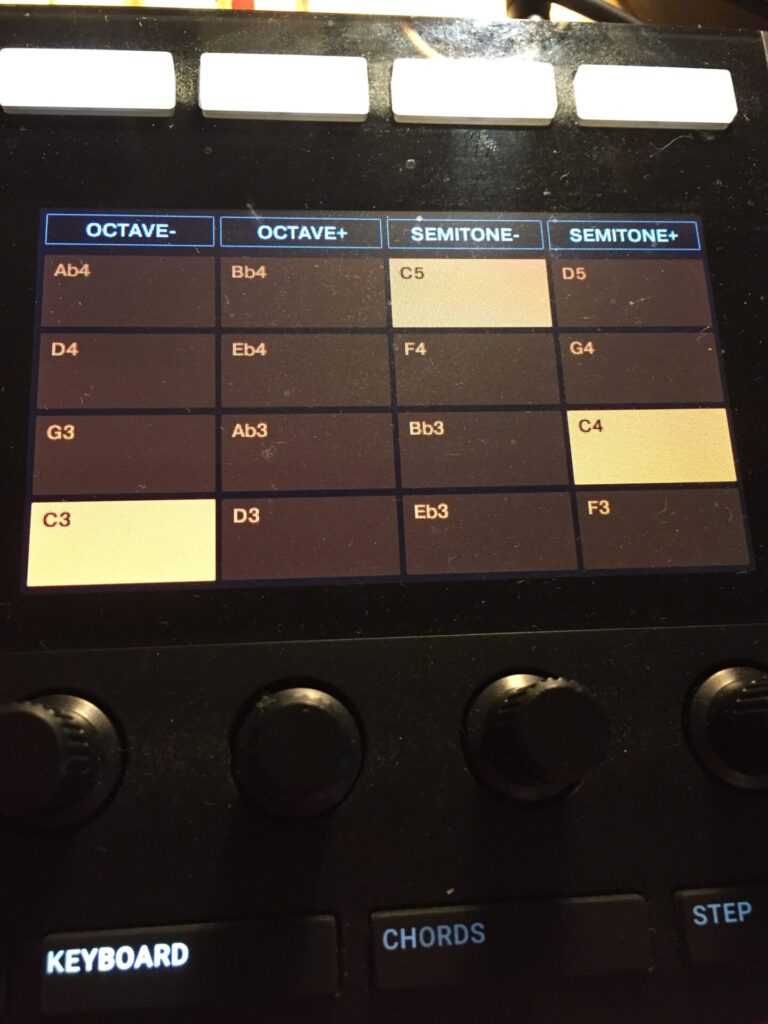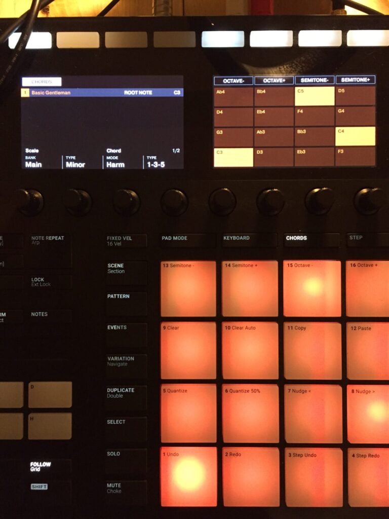 この方が楽だよね。いちおう、構成音を確認するために、Maschineのピアノロールを見てみてね。そうすればおぼえやすいはずやからね。