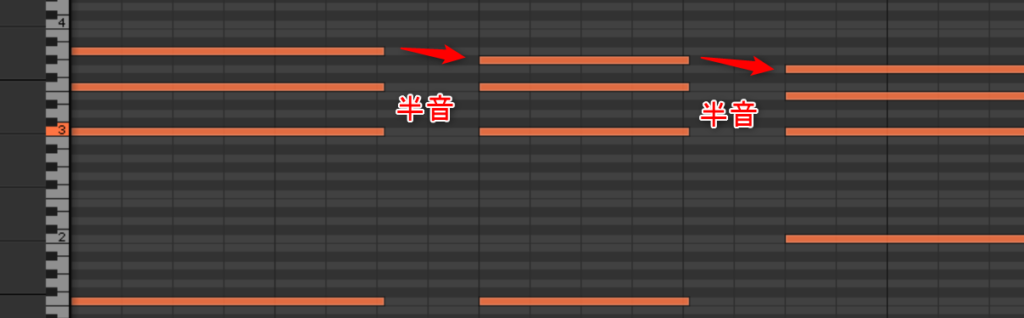ピアノロールやとこうやね。特にBb7のところなんか、実際にはDm7b5にものすごく似てるよね。ということは、Dm7b5上でBb7弾いてもええよね。