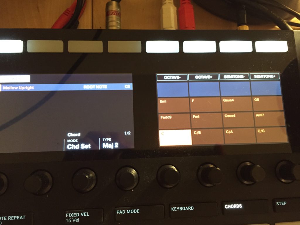 Cmaj7,Am7はMajor,Harm,1-3-5-7で弾けるけど、当然Bb7は弾けないからChormatic,Harm,Dominant7thで弾いてる。これはリアルタイムで弾くのはむりやな。こういうのを弾きたくなったら、鍵盤やら、PUSHに移行すればええよ。Jamなら弾けるけどね。PUSH勧めたいけどね。