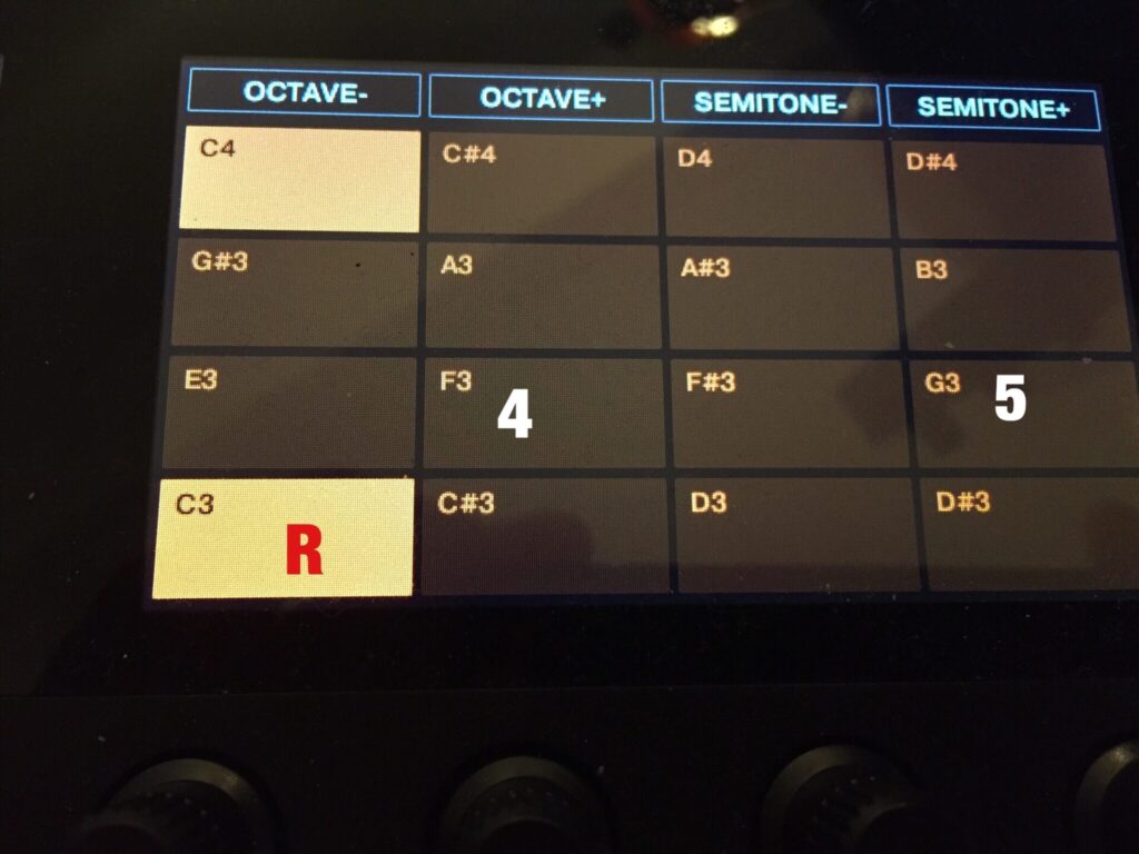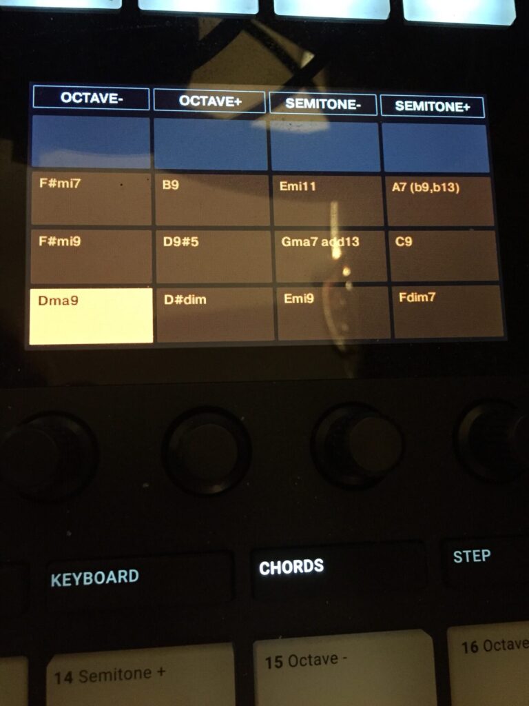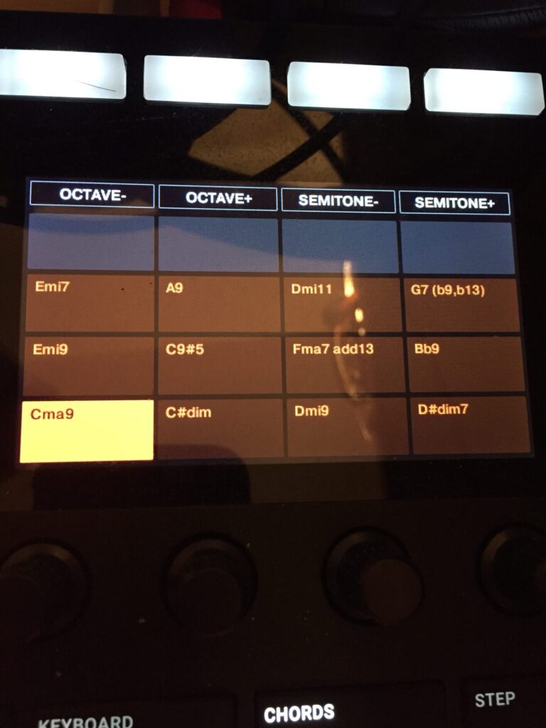 メジャーのダイアトニック・スケールのⅡm7-Ⅴ7ーI△7ーI△7のキーが変わっとるだけやね。んじゃ、これ、Maschineのコードセットで見てみようか。
