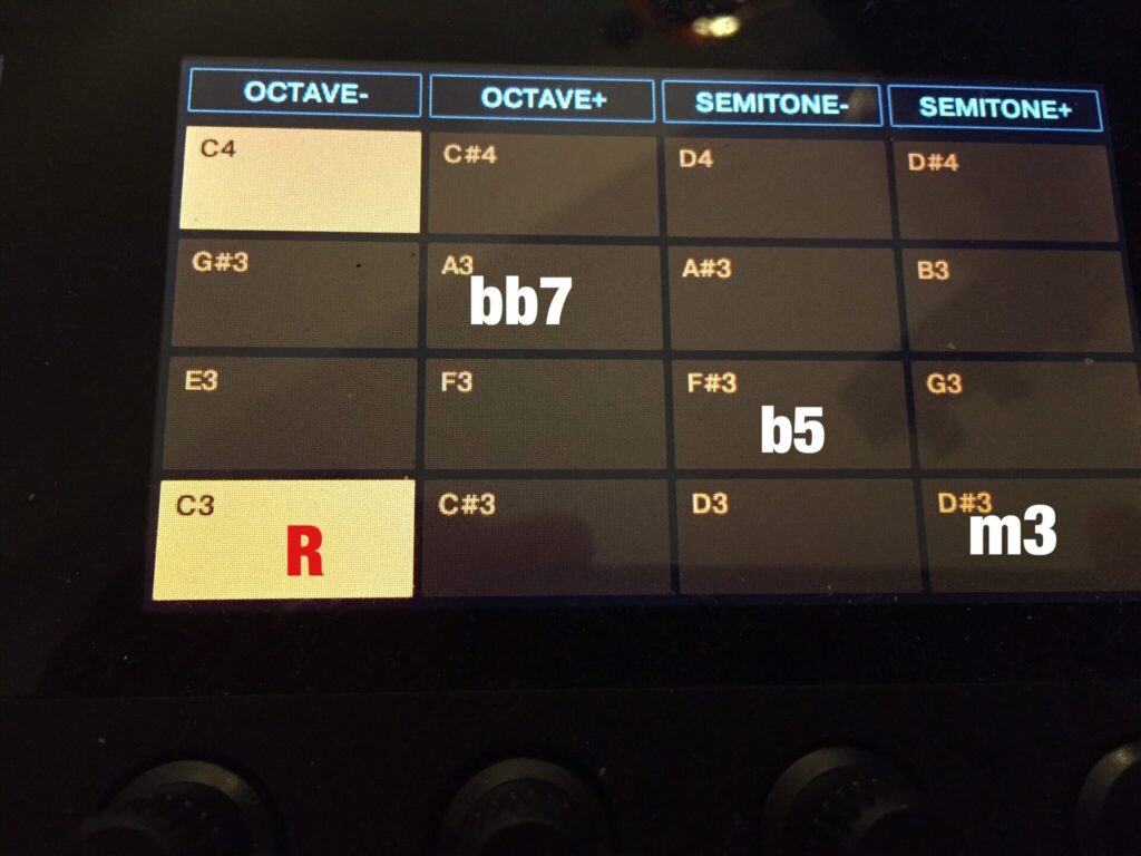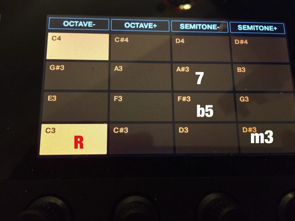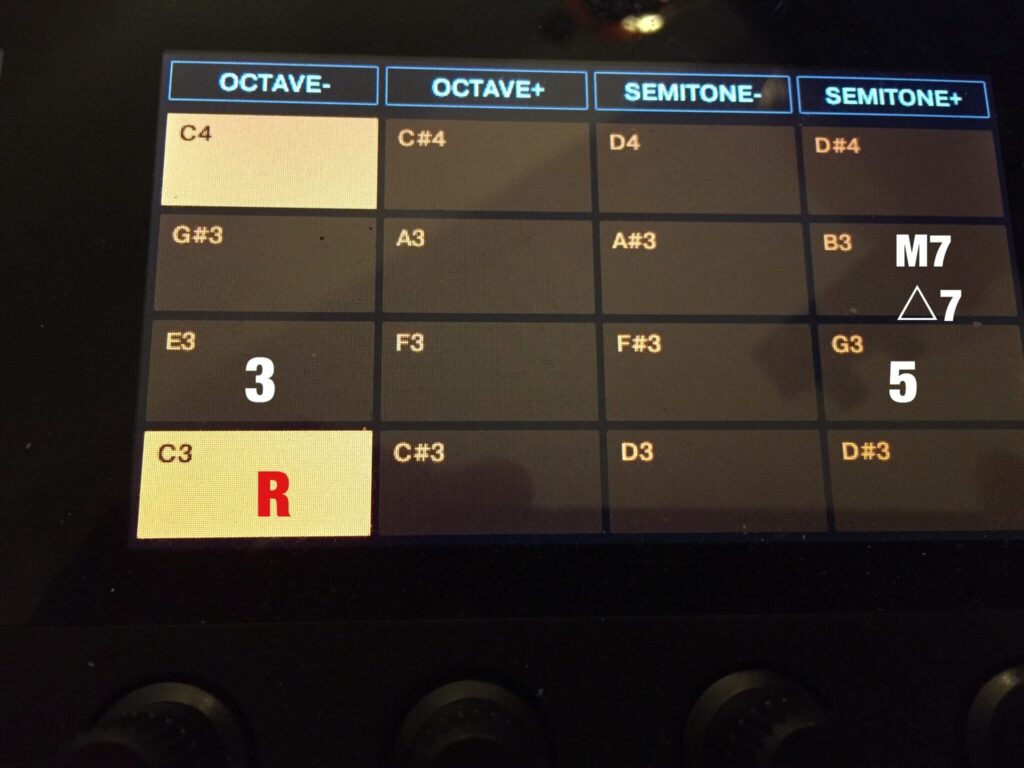 Maschineのコードセットはいろいろ狂ってて、普通にⅡm7-Ⅴ7ーI△7弾けるのこれしかないの。