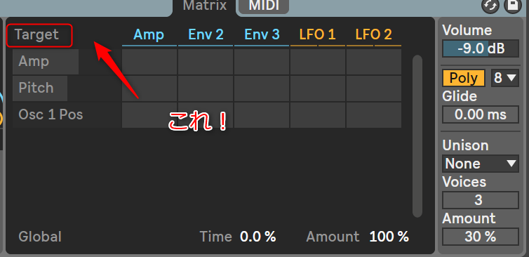 ターゲットを、VCO,VCF,VCAとかにするってことだおね。