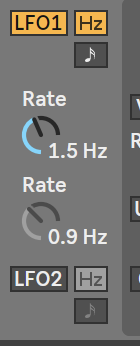 音符マークを押すと、Ableton Liveのマスターテンポに合わせてくれる。だから、8分音符とか、音価にあわせてLFOをコントロールできるんやね。