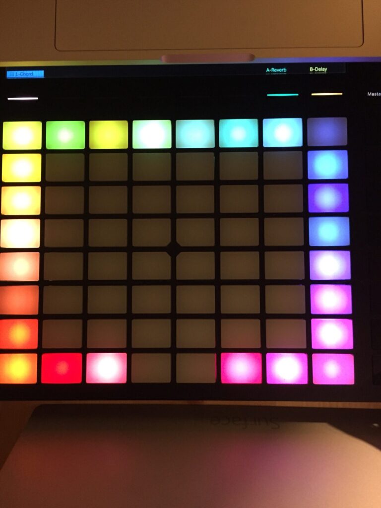 で、コピーしていく。Ableton PUSH2でコピーする場合はDuplicateキーを押しながら、コピー元のパッドを押す。それから、コピー先のパッドを押す。こうやってコピーしていく。