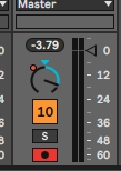 トラックのオン・オフは黄色いトラック名10と書いてあるところが、ミュートです。普通のDAWはMがミュートに割り当てられていることが多いのですが、Abletonは違います。0です。これ、トラック・アクティベータと言います。わかんないですよね、初めは…