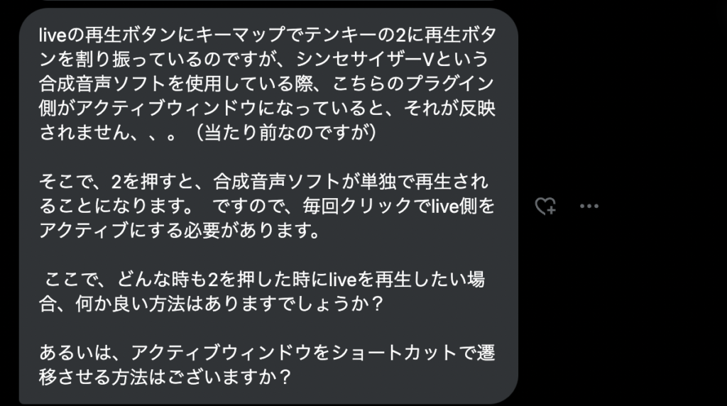 毎回ウインドウをオフにしてAbleton側で再生するということをやっていたら面倒くさくてハゲ散らかしてしまいますね…