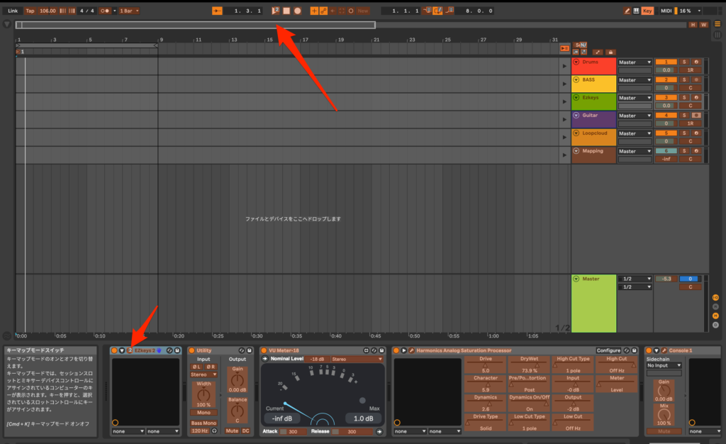 私はSynthesizer Vは持っていないので、内部にシーケンサーがあるもので考えてみます。Ezkeysで考えましょう。