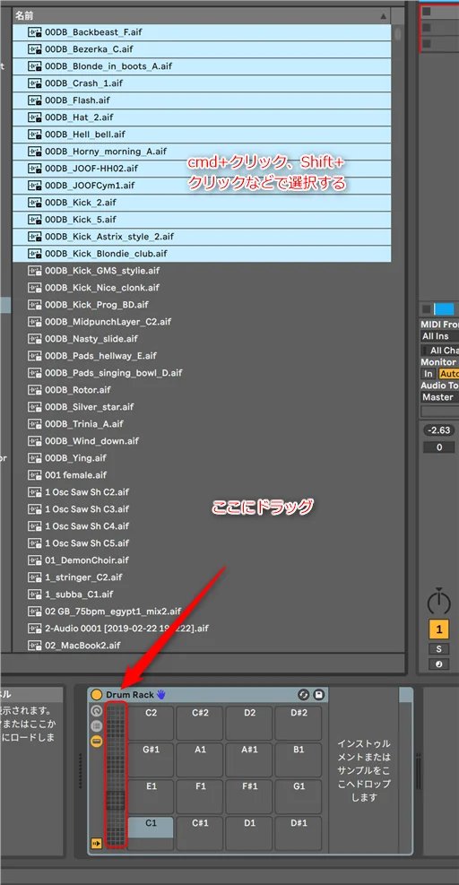Drumrackには一括でサンプルを持っていくことが出来ます。
