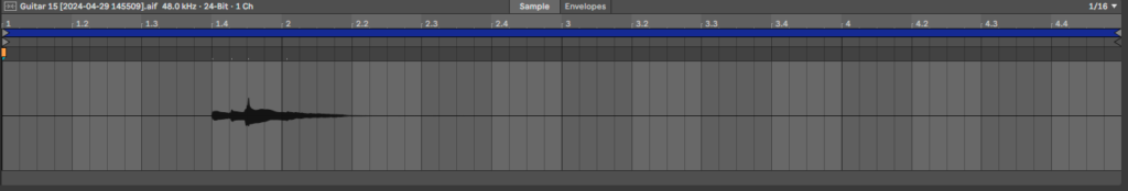セッションビューで毎回ギターのフレーズを4拍目から再生するというのも怠すぎますよね。でも「時間を新規シーンへと統合」すると、ギターを4小節ループに書き出してくれます。