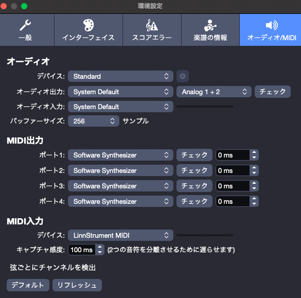 ステップ入力的な設定 サウンド→MIDIキャプチャをオン コードなどを打ち込む時はパッドのほうが速いかも。ギターに関しては実用的なフィンガリングにほぼなっているので行けそうではある。