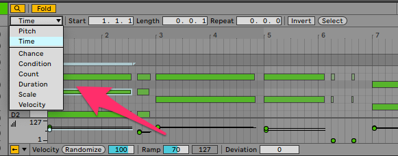 そういう時に便利です。Slide情報をいろいろ変形させてみました。もちろんベタ打ちにして、それぞれのノートに違うLFOを描けるのも面白いと思います。