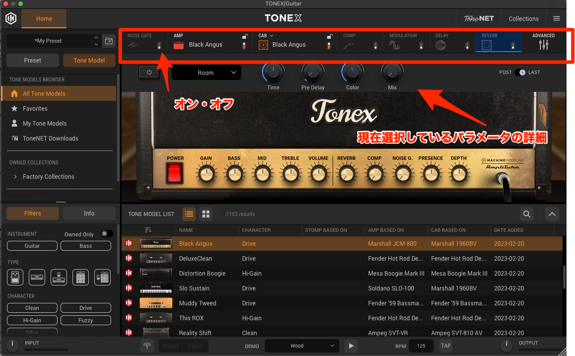 下の画像にあるように、1153件というのはTONEX MAXのプリセットの数ではないかと。まあ、十分すぎるくらいの数ではありますけどもね…