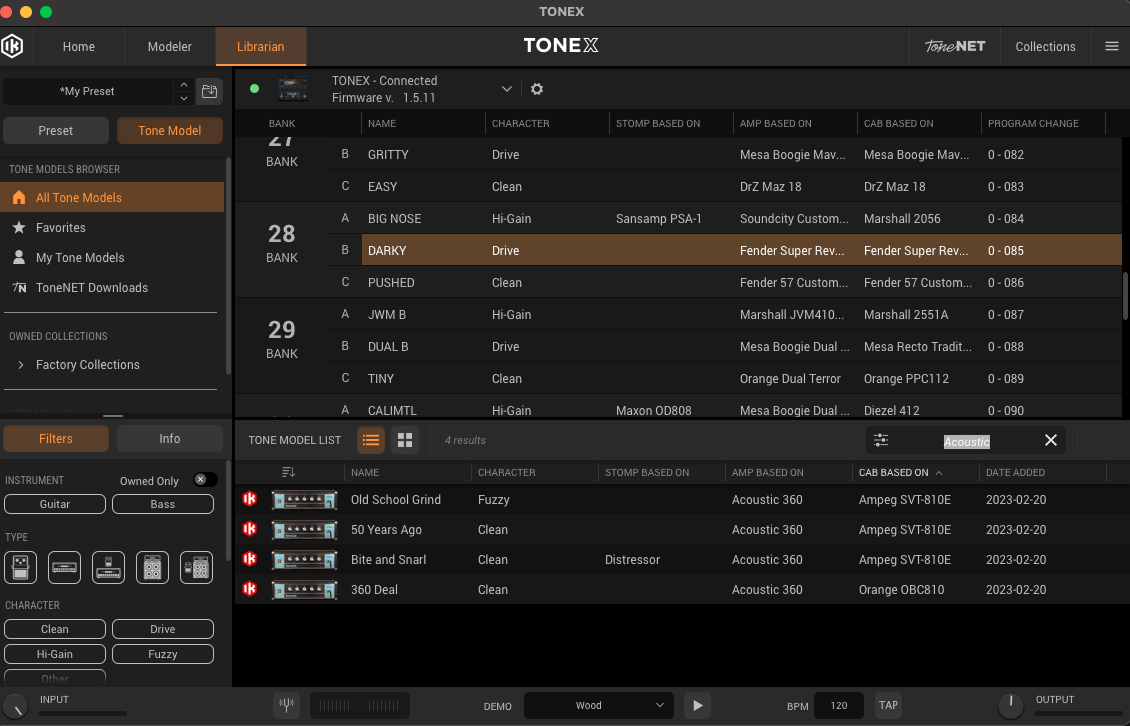 TONEXアプリで立ち上げ、TONE.NETにつなげると、30,481件のTone Modelが見られます。