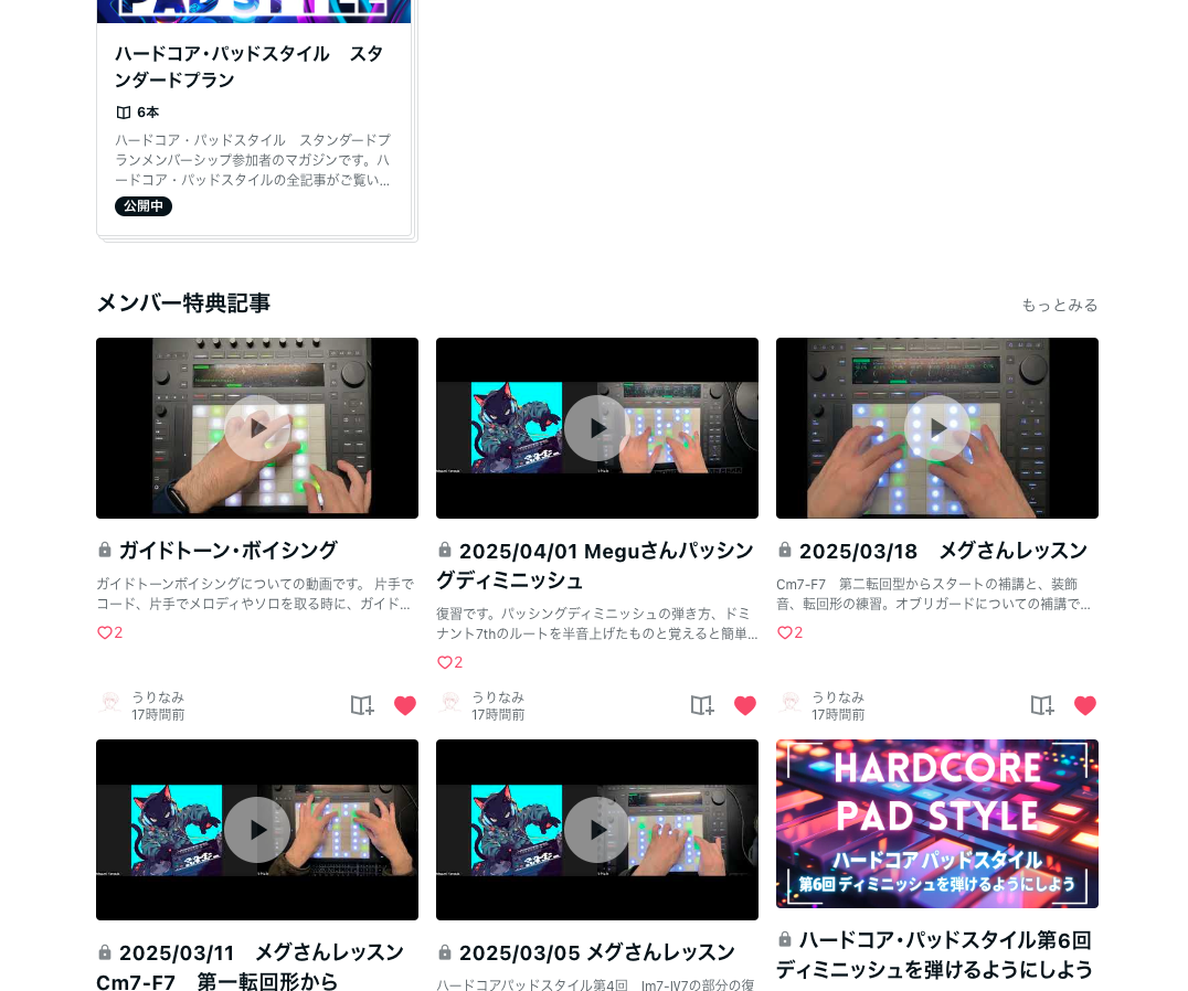 ハードコア・パッドスタイルは後で読まれることも考えて文章、動画、プロジェクトファイルとかなり構築して作ってますけど、メンバーシップはフットワーク軽く、作りやすいやり方でやっていこうと思います。