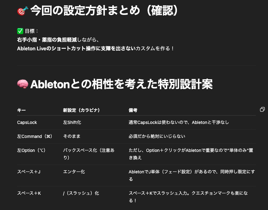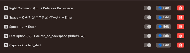 今までもKarabiner-Elementsは使ってきたんですけれども、最適化したつもりの設定が入力内容が変わったことによって、今の自分にとっては負担を減らしているものではなくなったと言う事ですね。