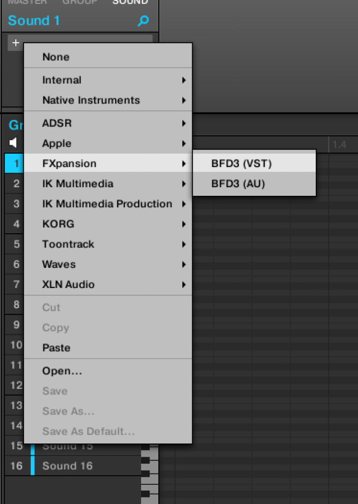 それから「FXpansion」「BFD3」と選んでくれ。VSTでもAUでもMaschineは使えるから問題ない。