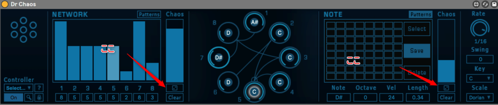 左側のChaosは押せば一応スケール内の音からつながりを変更してくれる。