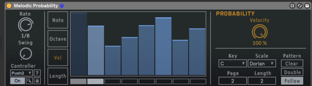 ベースもMelodic Probabilityドリアン・スケールで設定。
