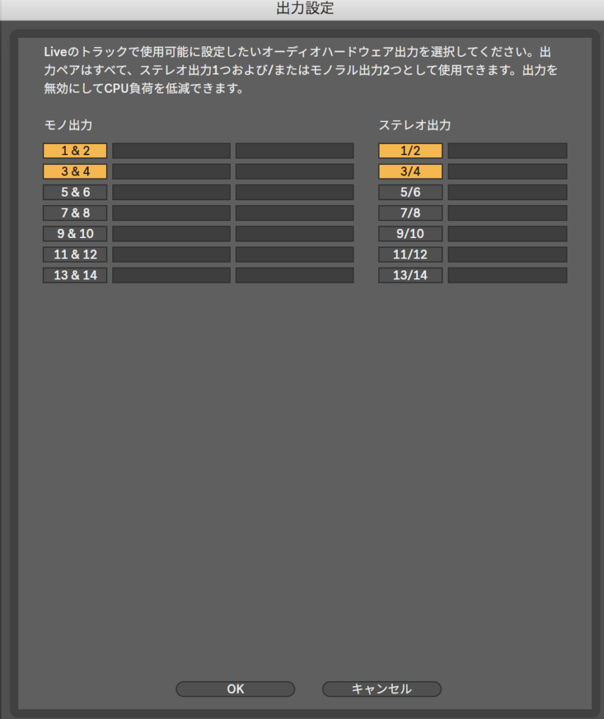 今回はCueOutを聞けるようにするために、ステレオ出力3/4を選択しました。