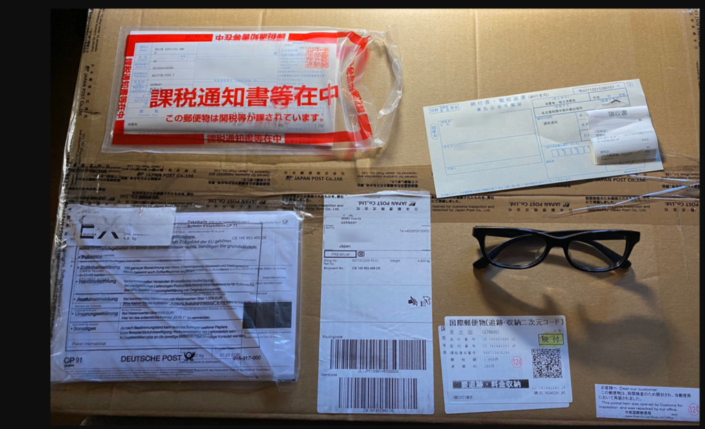めちゃ大きい箱で届きました。眼鏡と比較したらわかりますかね。