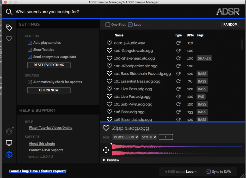 もちろんお気に入りも使えます。Sync to DAWもテンポにあわせてくれるので、ストレスなく視聴できますね。