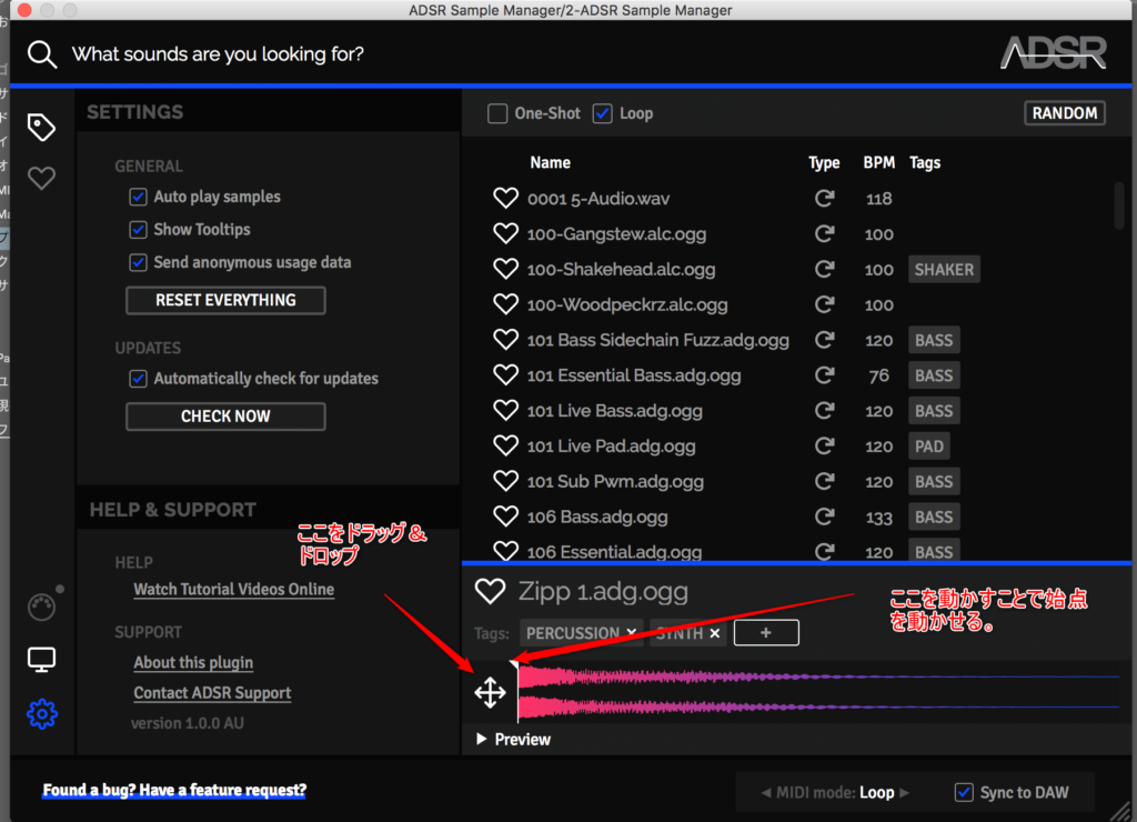 とサンプル扱えるプラグインには普通にドラッグ&ドロップできました。