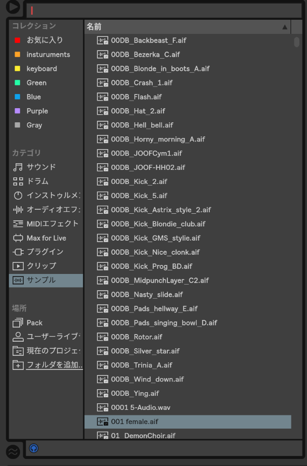 Packまで含めると膨大なサンプルデータ、みなさんも持っていらっしゃると思います。Ableton Liveのデフォルトだとこうですね。