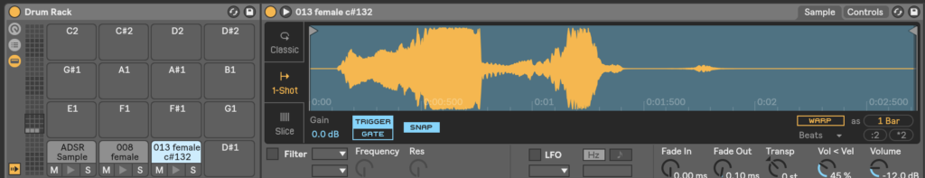 当たり前なんですけど、Maschineのサンプリングのデータもタグつけてくれるので、高速に検索して、Drumrackに読み込ませることも出来ます。なんというか、インモラルですね…