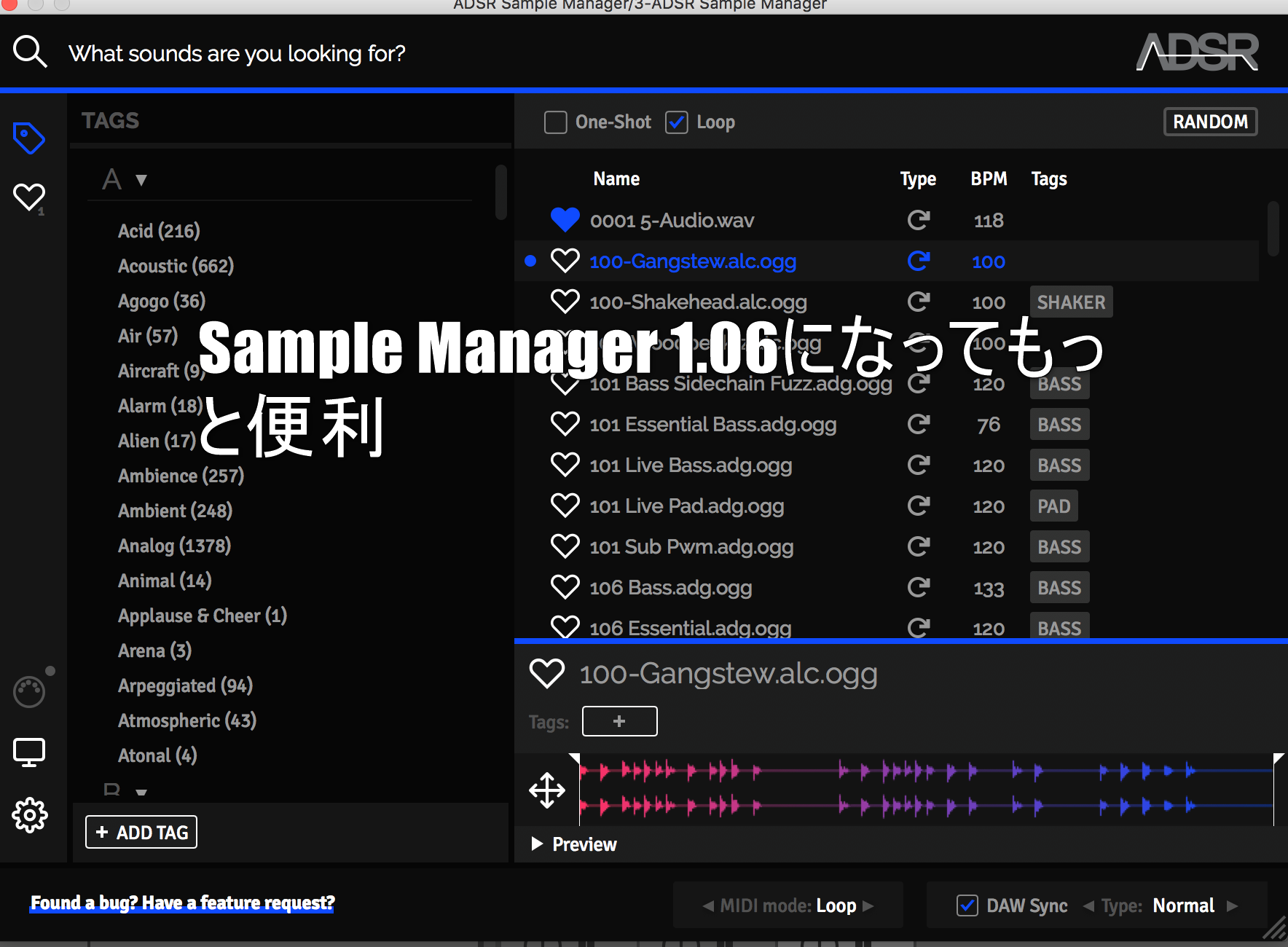 ADSRのSample Managerは高速なタグ付けと、始点を指定できることでびっくりするくらい快適なソフトでした。