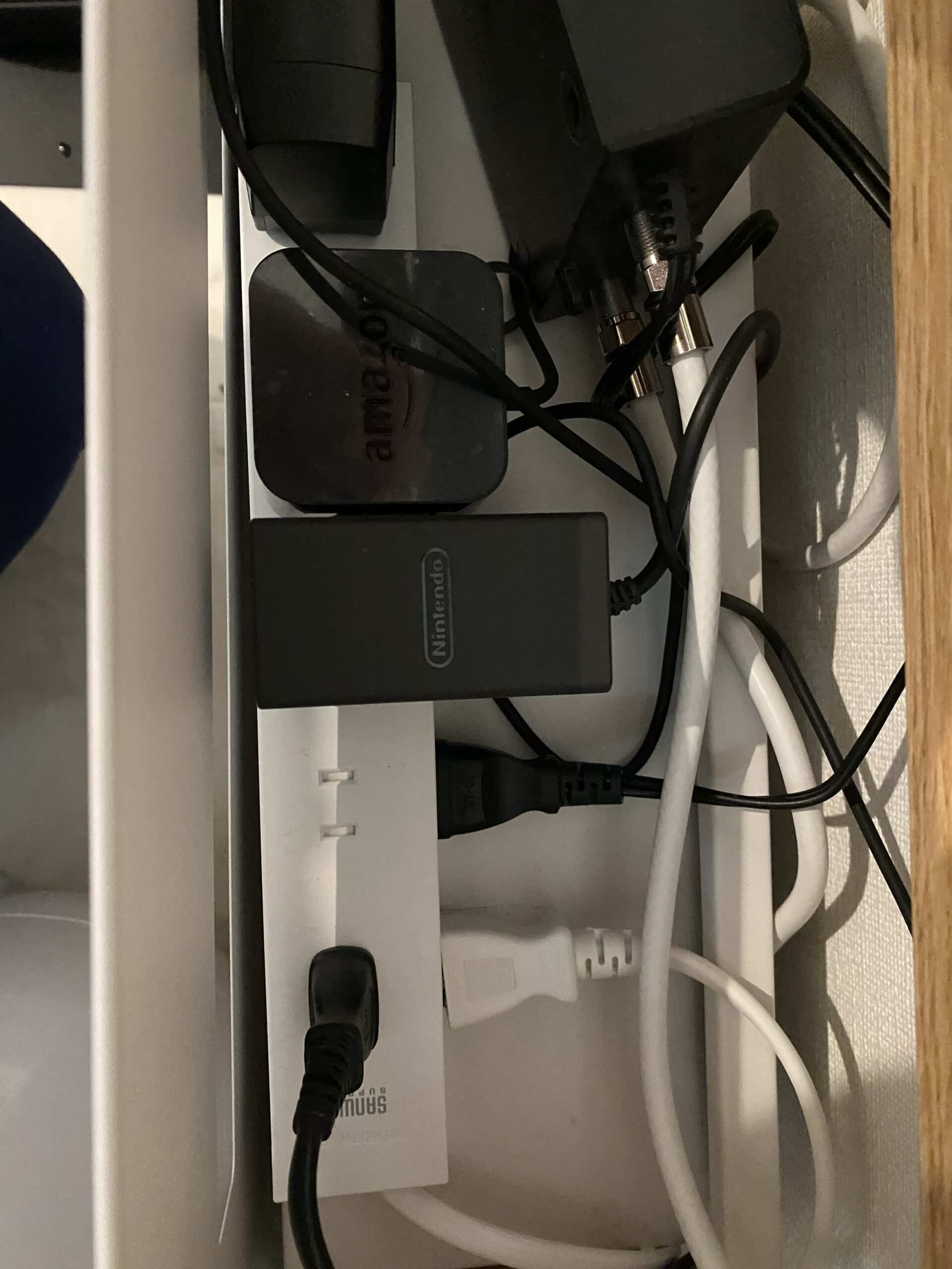 一番大きいのは10個口の配線があることですね。とにかく電源が必要となる場合にいちいち複数のタップを使うのは面倒くさい。掃除も大変ですし。ケーブル絡まって転んだりしたら絶望ですからね…