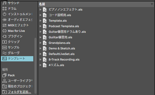 テンプレートの保存については、LIVE11でより簡単になりました。以前はフォルダを作成する必要が有りましたが、LIVE11でははじめからテンプレートを保存する場所があります。