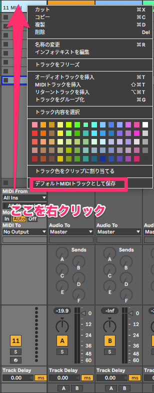 やり方は簡単。トラック名で右クリックして、「デフォルトオーディオトラックとして保存」をクリックします。