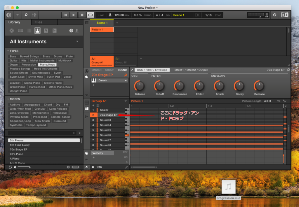 でも、一旦外部に保存すればできる。Progressionとなっているのがそうだね。気に入ったものを叩いてそれからデスクトップや任意のフォルダにドラッグアンドドロップすればいい。詳しい説明はScalerの方法見てね。