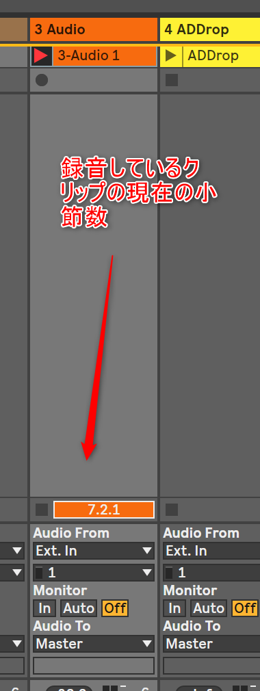 まあ、これはわかりやすいかな。セッションビューに録音している時って、実際には他の再生しながら録るよね。そのクリップが何小節かわからなかったら困るやろ。ここでクリップの小節数がわかるよね。