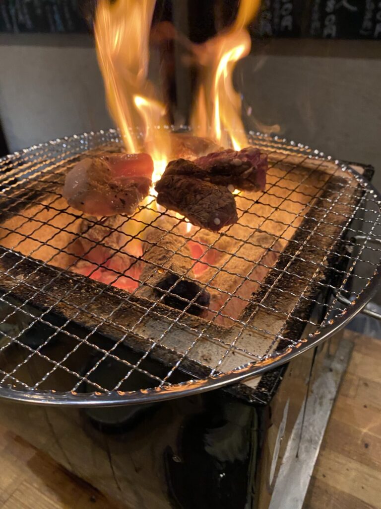 終わってから二人で近所のホルモン焼き屋に食べに行きました。