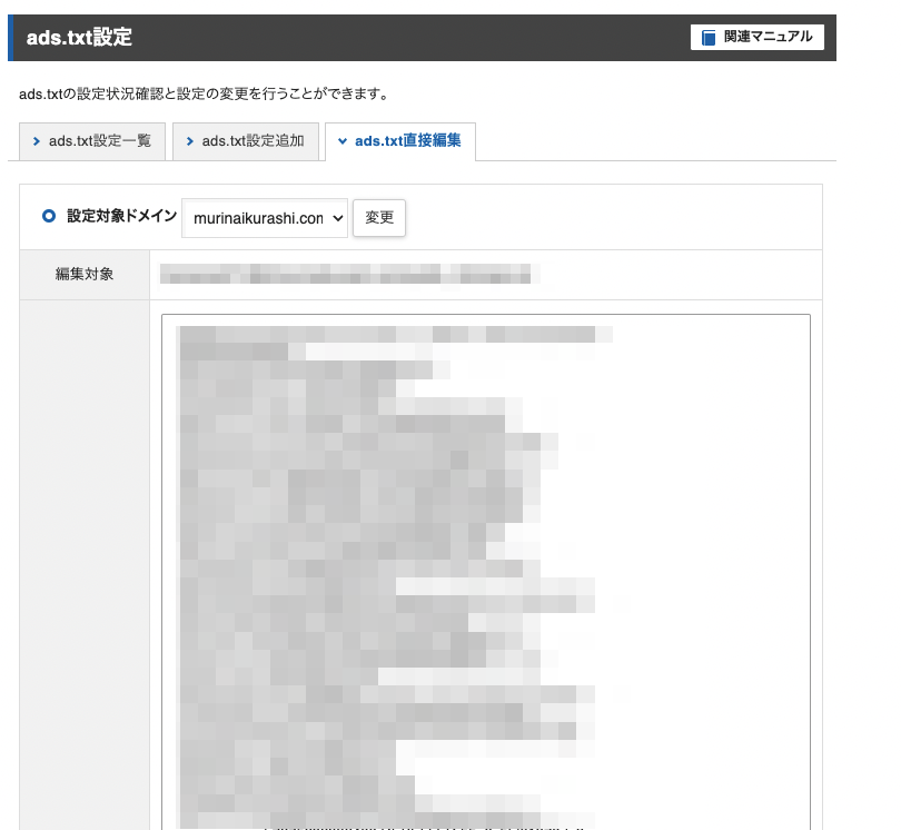 adstxtを貼り付けるわけですが、アドセンスなどを使っている人は、上書きではなくて、その後に追加する形にしてください。