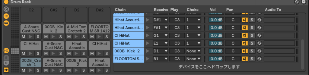 まあ、クラッシュとキックは同時に鳴らすよね。C1にサンプルレイヤーするのも一つの方法やけど、もう一つ方法があるんよ。