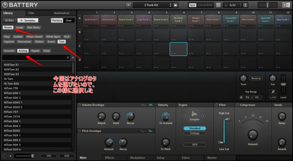 公式の解答の様に、サンプル一個一個PADにアサインすればできますけど、Battery側でやったほうが早くできるんじゃないかと思ったので記事にします。