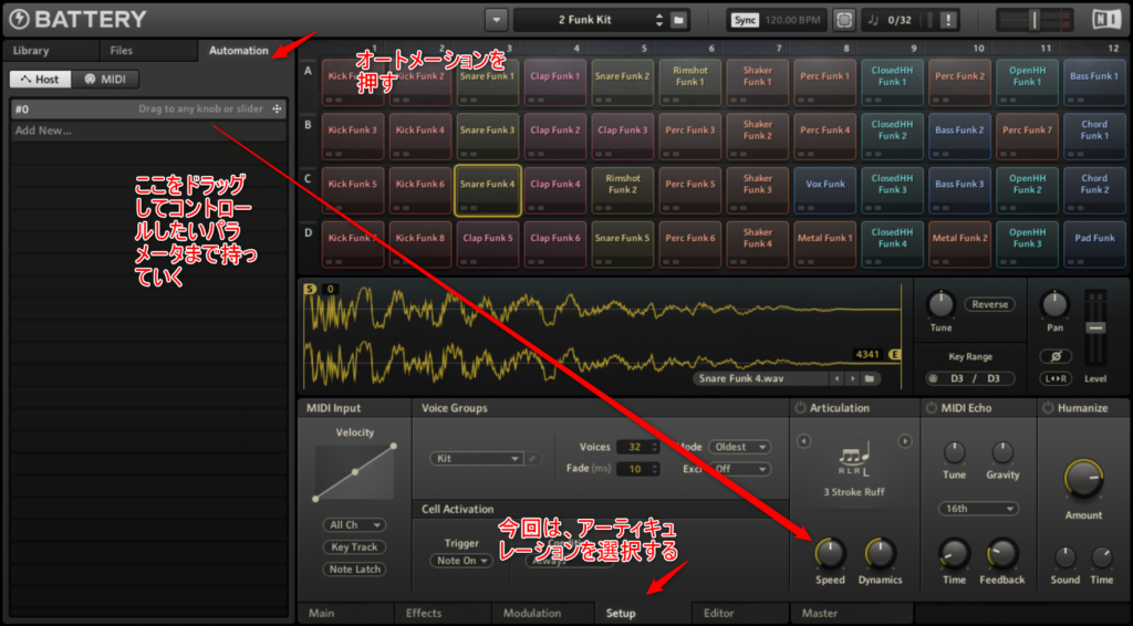 Batteryを使ってフィンガードラミングする方法 レイアウトのやり方